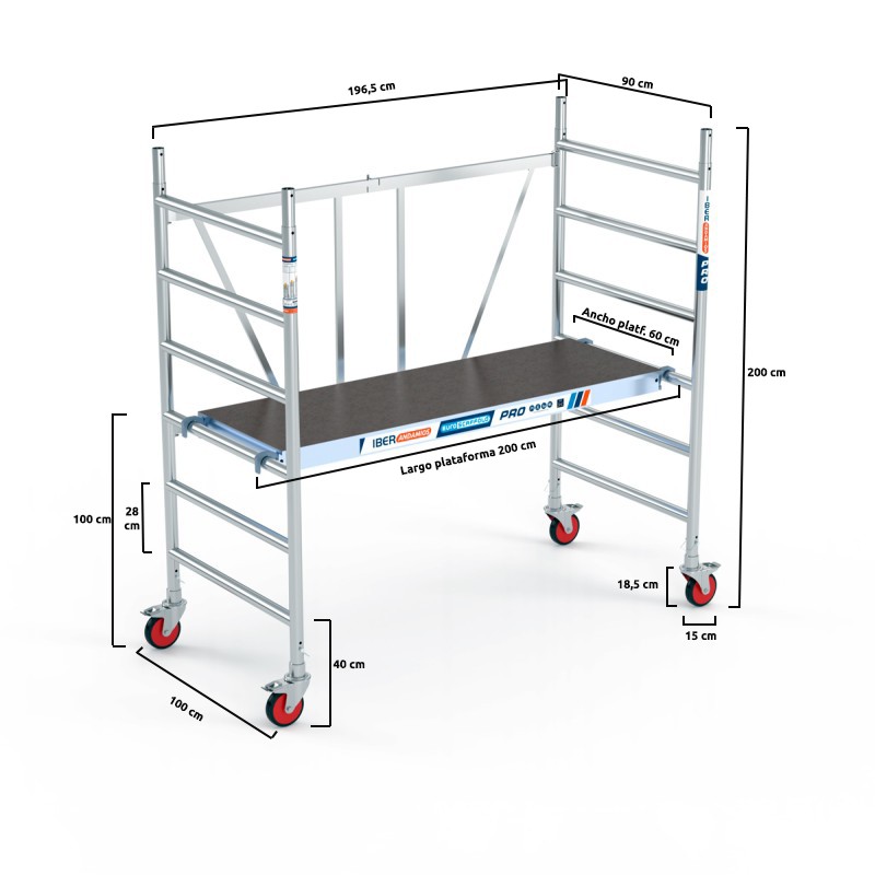 Andamio Plegable Aluminio 3.00 m de Altura de Trabajo 190×90. Plataforma con Trampilla + plataforma estrecha es ideal para tus reformas en el hogar. Tiene un ancho de 90 cm y una longitud de 190 cm, unas dimensiones ya montado con las que puede atravesar cualquier puerta.