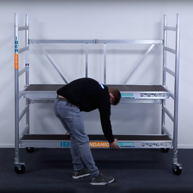 En todos las torres de andamios la plataforma es movible. Ten en cuenta que, porrazones de seguridad, debes tener un metro de marco de pasamanos a tu alrededor.