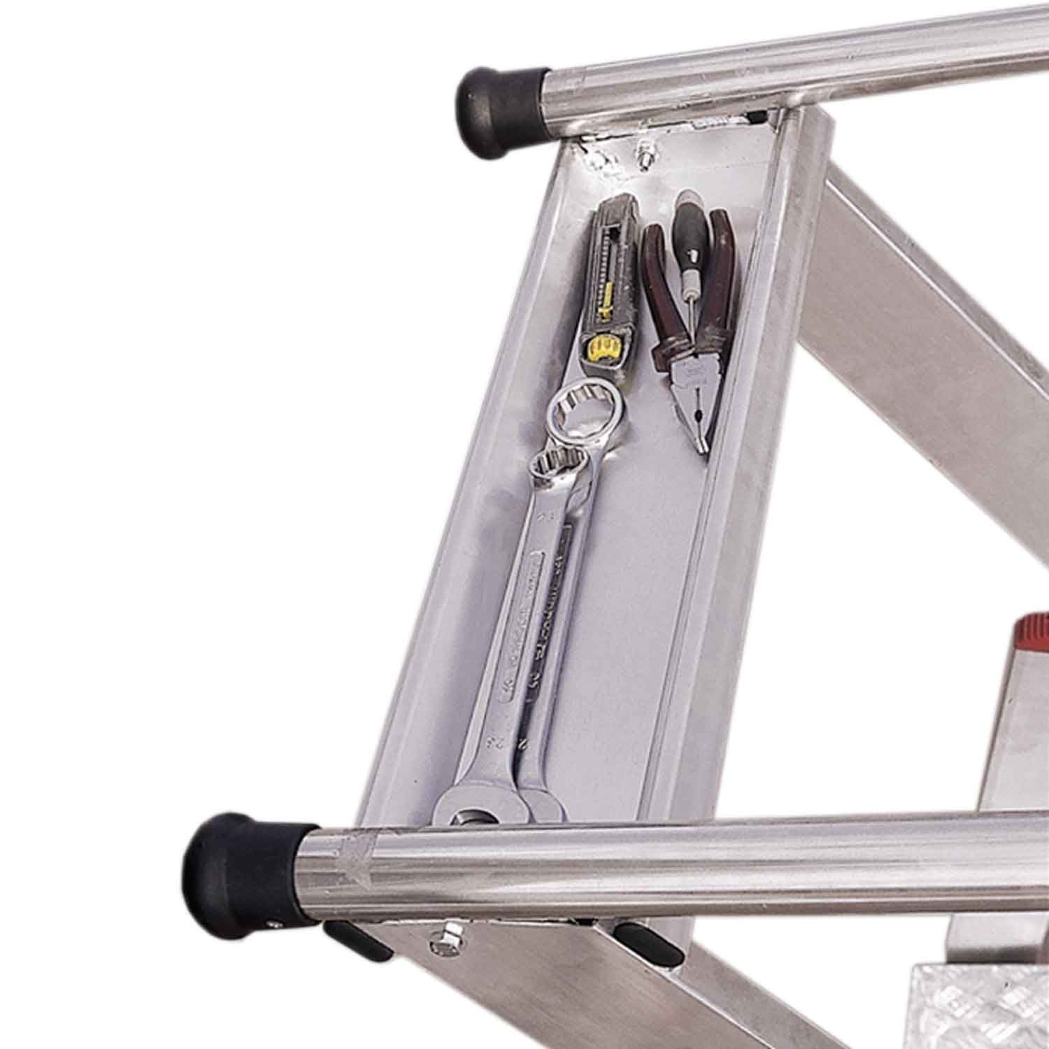 Con 5 años de garantía, esta es la inversión definitiva para cualquier profesional que valore la eficiencia y la durabilidad. ¡Haz que cada tarea cuente y añade esta escalera inigualable a tu equipo de trabajo hoy mismo! En la imagen, el modelo SMTS200, n° peldaños 7