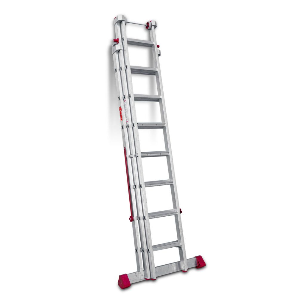 Al ser una escalera multiusos combinada se puede utilizar como escalera de tijera de doble subida, los tres tramos se pueden extender y se puede usar como escalera de apoyo a pared, se puede poner en desnivel por lo cual es indicada para realizar tareas en suelos desnivelados como aceras o escaleras.