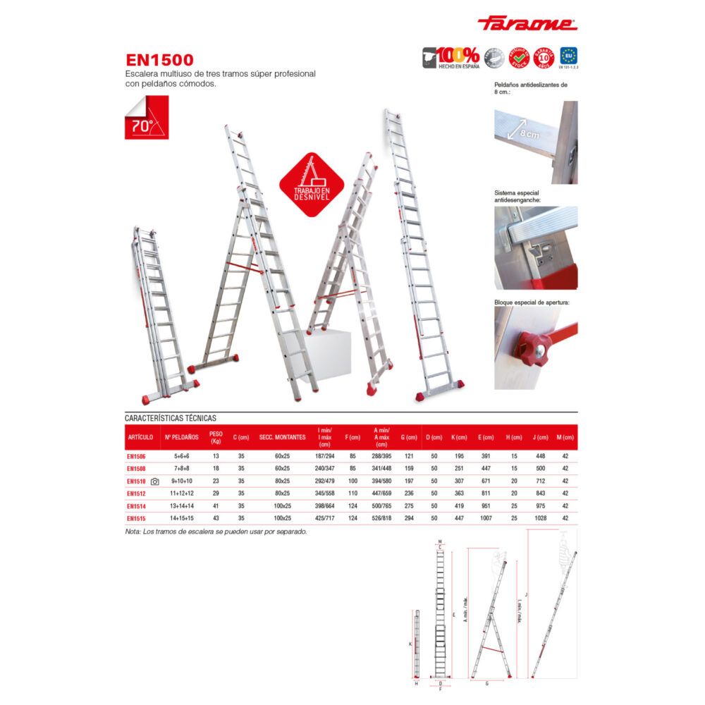 Escalera Extensible Triple Faraone EN1514 n° peldaños 14