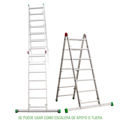 Este producto, en su forma de escalera de apoyo, cumple con la normativa europea EN 131, 1,2,3,4 y se entrega junto con el certificado de conformidad y el manual de instrucciones. Carga máxima de 150 kg.